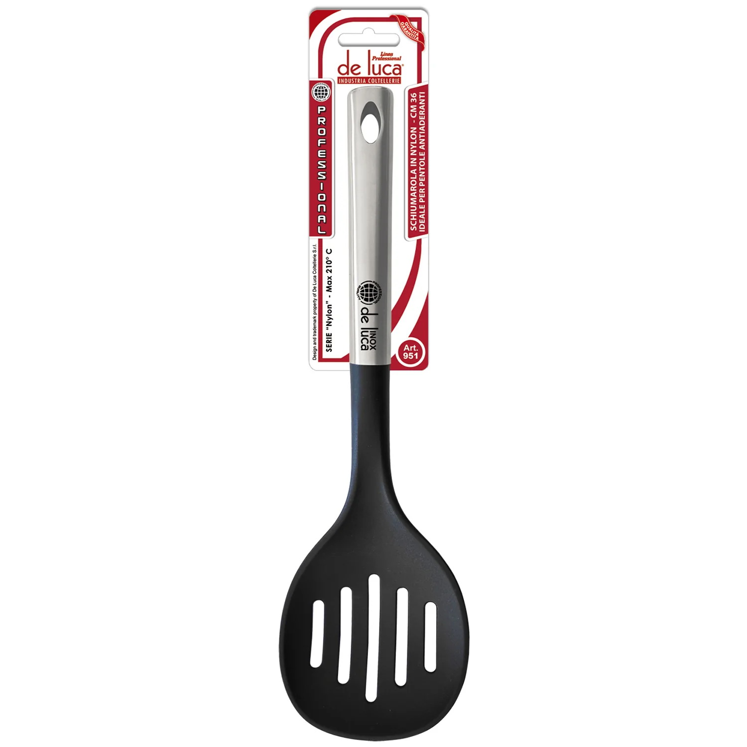 Extrem de rezistent la căldură, o poți folosi în timpul oricărei pregătiri. Designul simplu și liniar se combină cu caracterul său practic și ușurința în utilizare, făcându-l un element indispensabil al bucătăriei tale. Mânerul din oțel garantează o prindere fermă și sigură și este echipat cu un inel convenabil pentru a vă permite să îl agățați și să îl aveți întotdeauna la dispoziție. Dimensiuni: 9,5x3x35,5 cm.