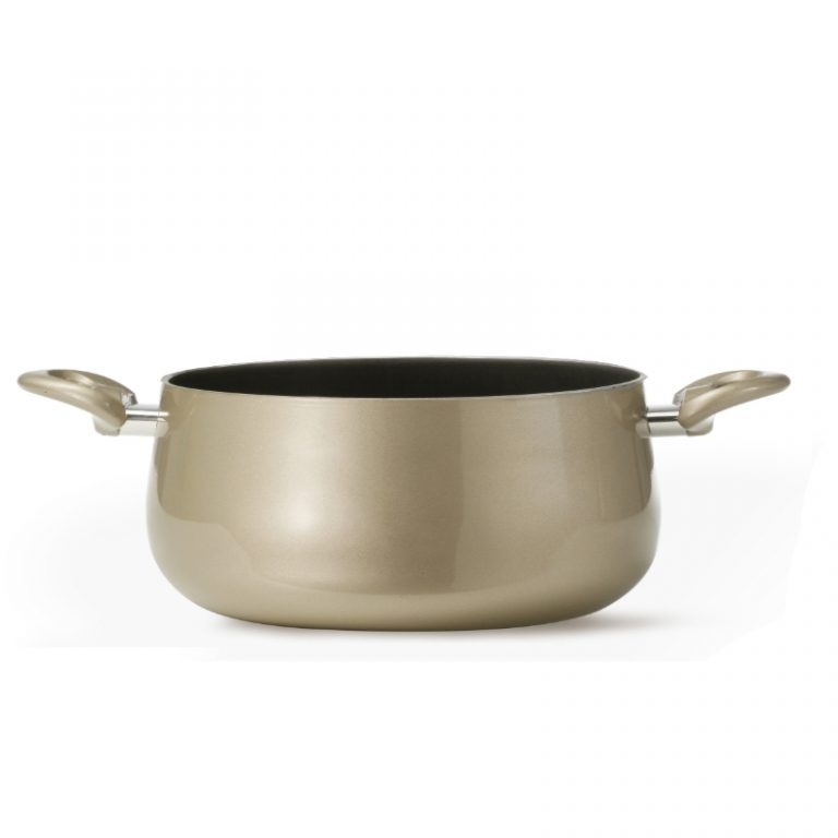 Mânerele ergonomice cu o culoare atractivă de șampanie combină estetica și caracterul practic. Fundul deosebit de gros optimizează difuzia căldurii pentru o gătire mai bună a alimentelor. Procesul de aplicare a stratului intern AM SALUS EXTRA STRONG asigură durabilitate și fiabilitate în antiaderență și rezistență mai mare la tăieturi și zgârieturi.