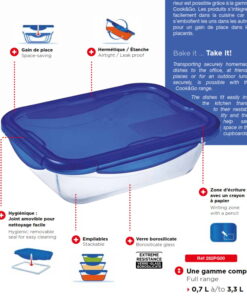 Vasul rezistă la schimbări rapide de temperatură, cuprinse între -20° C și + 200°C, ceea ce te ajută să mai lași niciodată gătitul pe ultima sută de metri. Prepară aluatul pentru prăjituri în avans, așază-l în tava Pyrex și păstrează-l la congelator timp de câteva zile. Pune-l la cuptor fără decongelare, chiar înainte ca familia să se adune în jurul mesei.